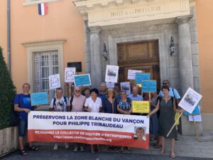 En route pour la Cour européenne des droits de l’homme (CEDH) : cagnotte de soutien pour le parcours judiciaire de Philippe Tribaudeau, lanceur d’alerte électro-hypersensible (EHS) qui se bat depuis 17 ans pour la reconnaissance de la toxicité des champs électromagnétiques artificiels et la création de zones blanches pérennes. Photo : Manifestation devant la préfecture de Digne avec Michèle Rivasi le 20/07/2023.